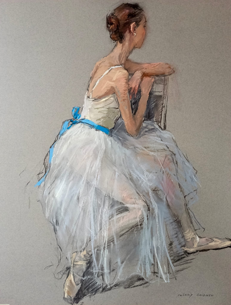Valeriy Gridnev 'Ballerina Seated' charcoal and pastel on paper 65x50cm