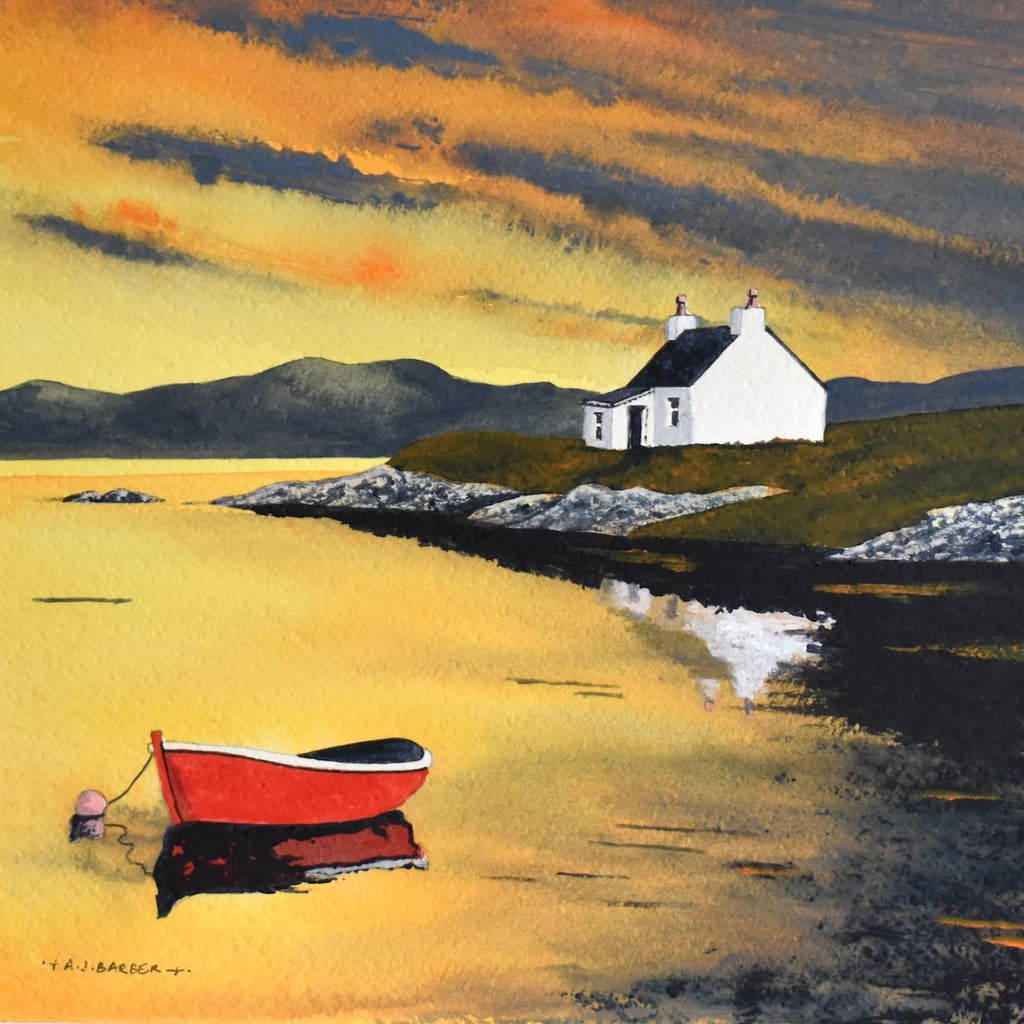 Anthony Barber 'Morning Light, Isle of Lewis' acrylic on watercolour paper 25x25cm