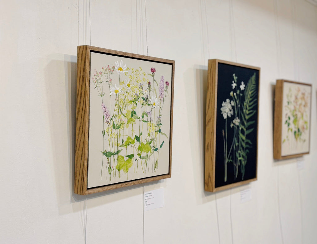 Emma Chambes 'Early Summer study, Bramble Blossom' egg tempera on board 30x30cm 33x33cm framed