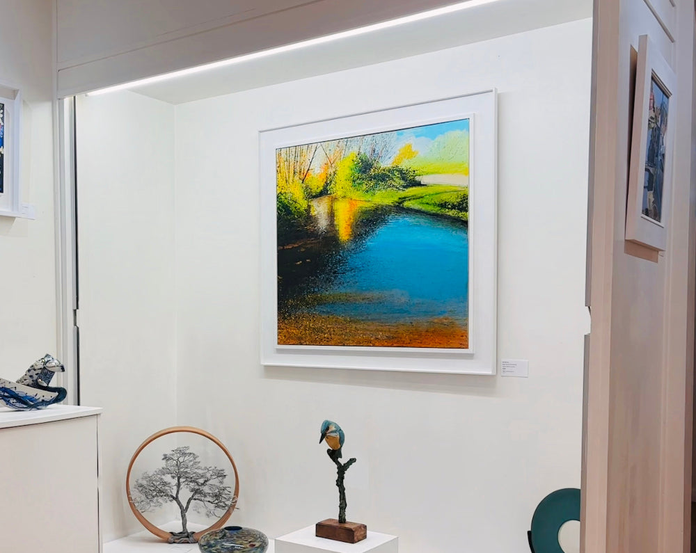 Rob Murray 'Bright Spring (The Wandle)' mixed media on canvas 76x76cm
