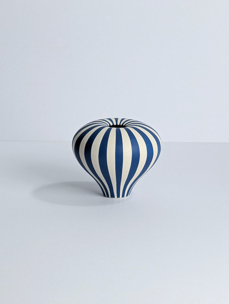 Georgie Gardiner 'Mini Blue and White Humbug Vessel' ceramic H8xD9cm