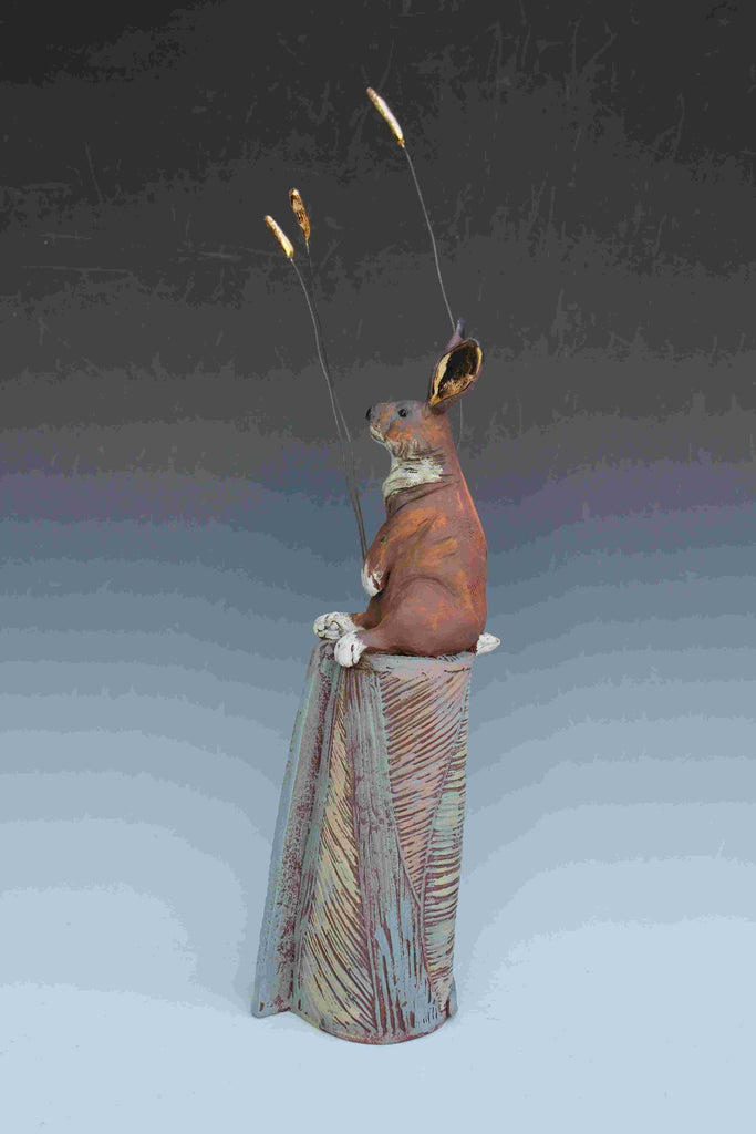 Jack Durling 'South Downs Hare, Resting from Above' stoneware, gold lustre and nichrome wire