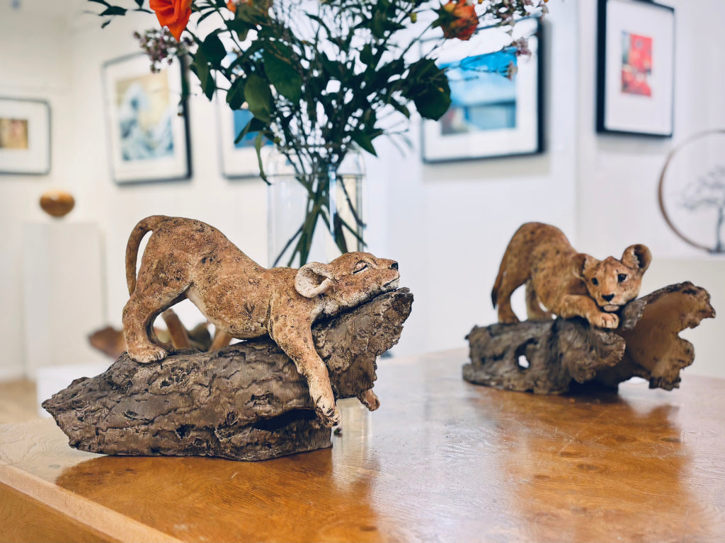 Julie Wilson 'Lion Cub on a Log' ceramic