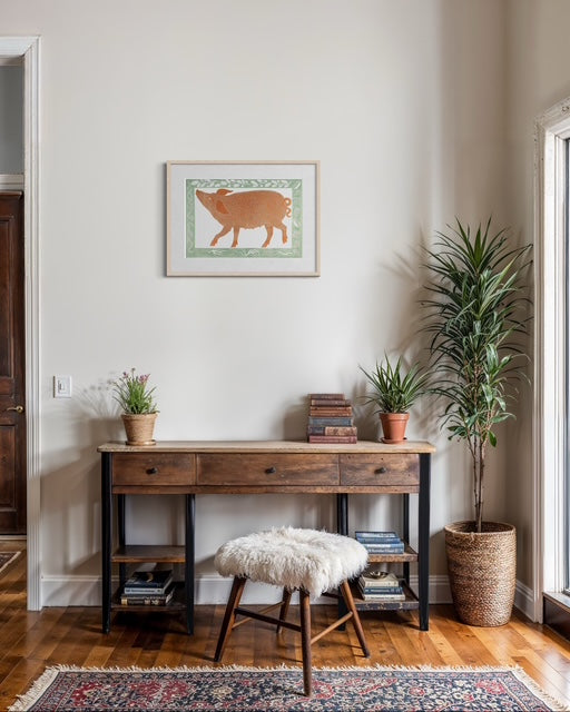 Lizzie Wheeler 'The Marmalade Tamworth' linoprint edition of 100 42x62.5cm
