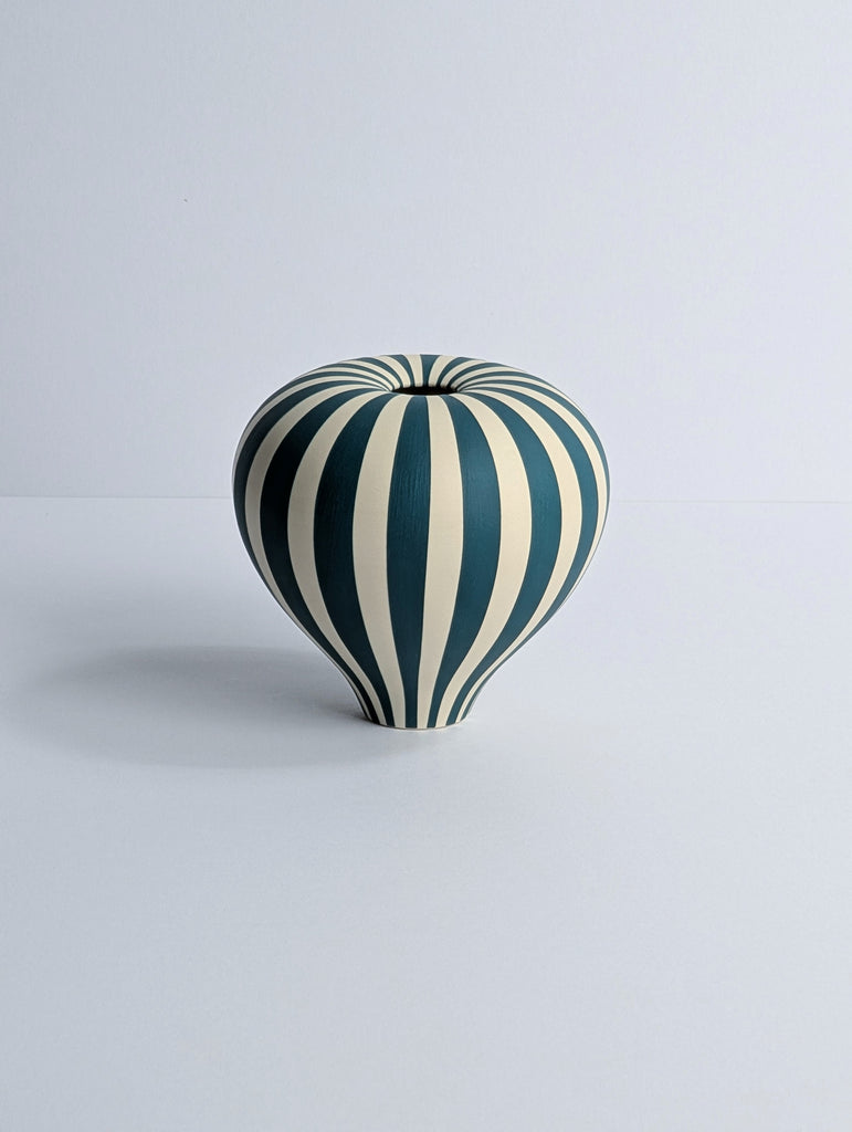 Georgie Gardiner 'Midi Emerald and White Humbug Vessel' ceramic H10xD10cm