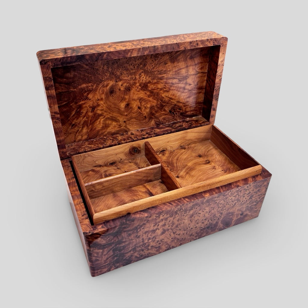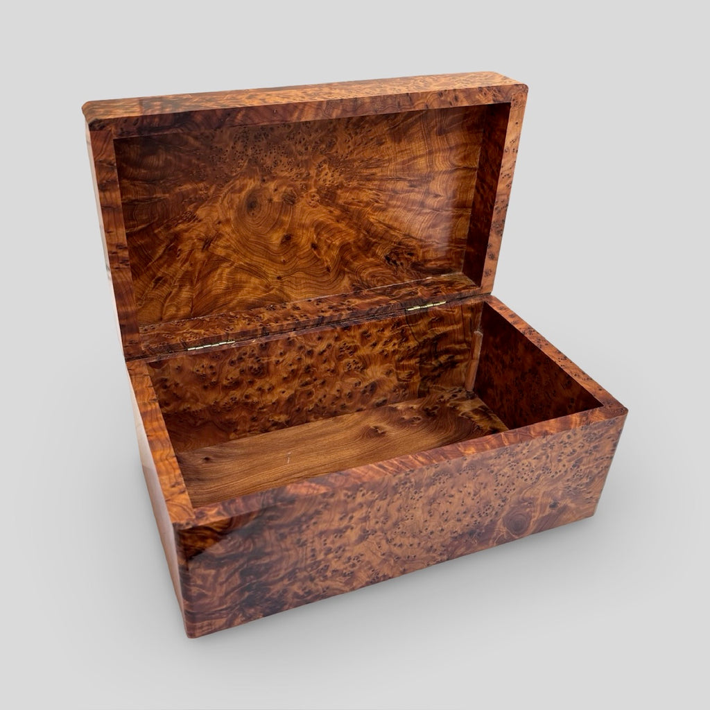 Please note that the interior image shown is an example. Each box is handmade, so the pattern and appearance of the burr may vary slightly from the photographs.