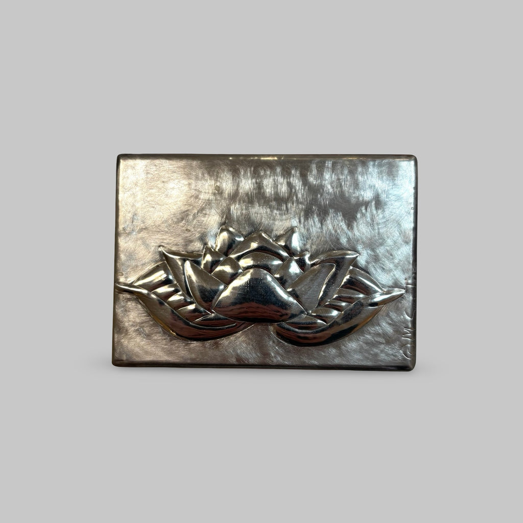 Maria Santos 'Water Lily 2-Section Box' thuya wood and pewter 3x9x6cm