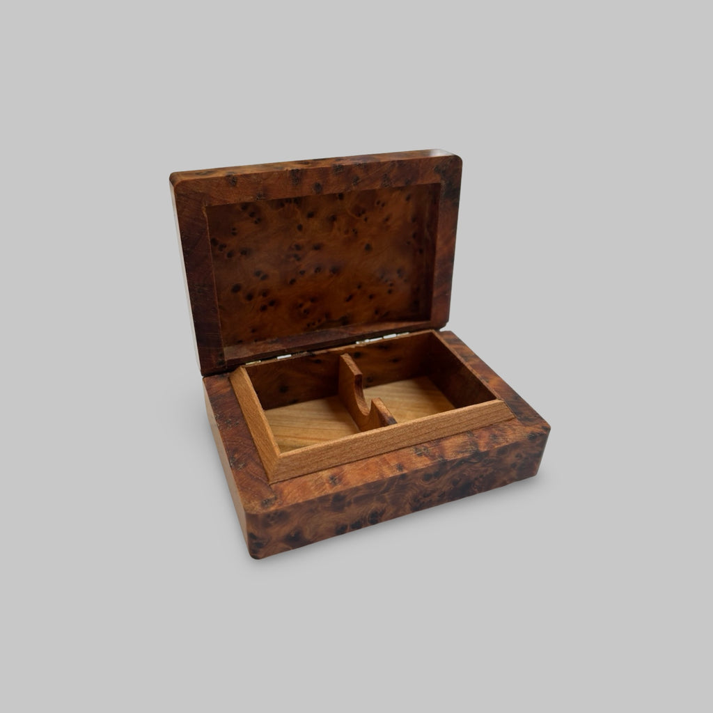 Please note that the interior image shown is an example. Each box is handmade, so the pattern and appearance of the burr may vary slightly from the photographs.