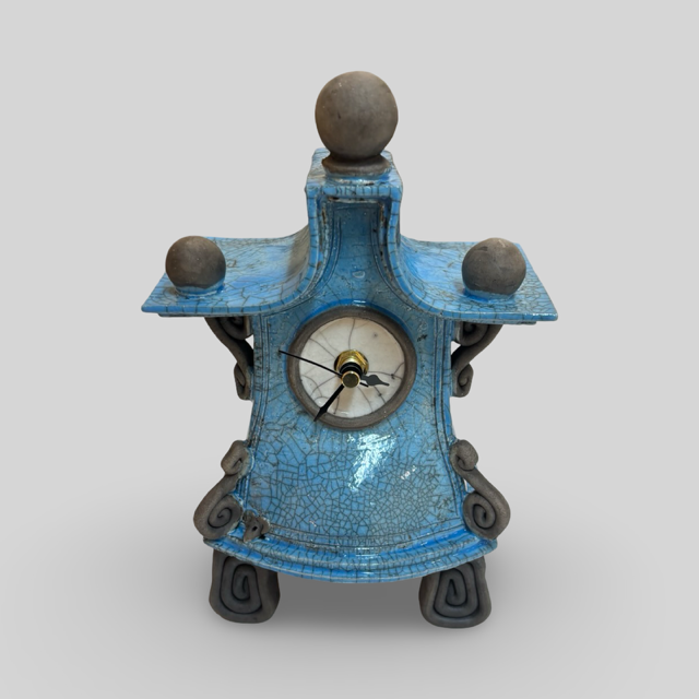 Ian Roberts 'Mantel Clock' (light blue) ceramic H22xW15xD9cm
