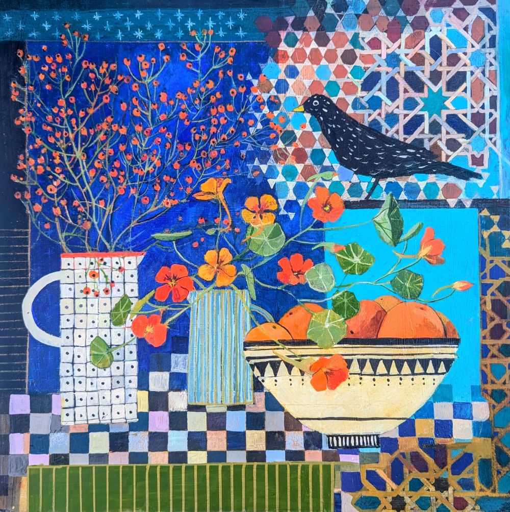 Jenny Martin RSW 'Autumn Harmony' mixed media 38x38cm (51x51cm framed)