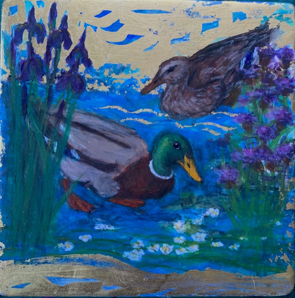 Julie Goring 'Towards the Water' acrylic on gesso panel with 22ct gold leaf 12x12cm