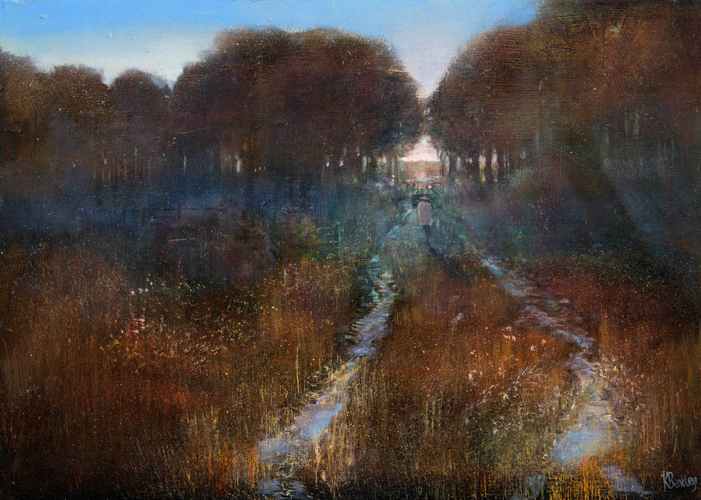 Kate Bentley RI RSW 'Pink Coat, Pink Sky v2' oil on board 42x30cm (40x52cm framed)