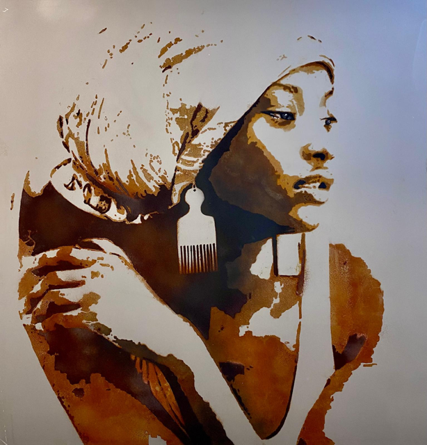 Louisa Tebbutt 'Breathe' 83x83cm mixed media on oxidised steel