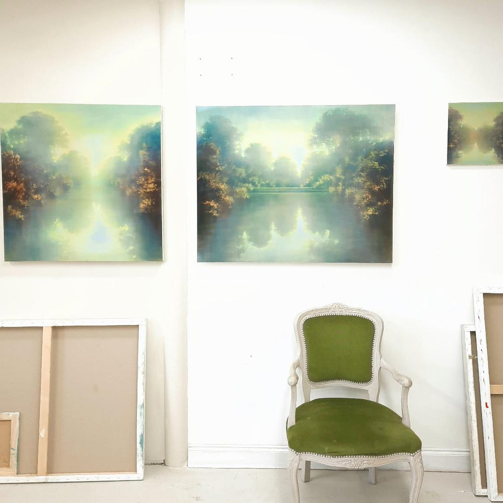 Louise Fairchild 'Afternoon Light' oil on boxed canvas and metallic pigments 80x80cms