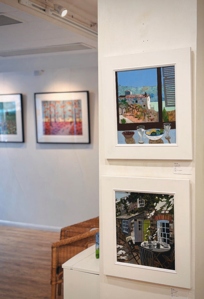 Mike Hall 'Courtyard Breakfast' acrylic on board 34x30cm