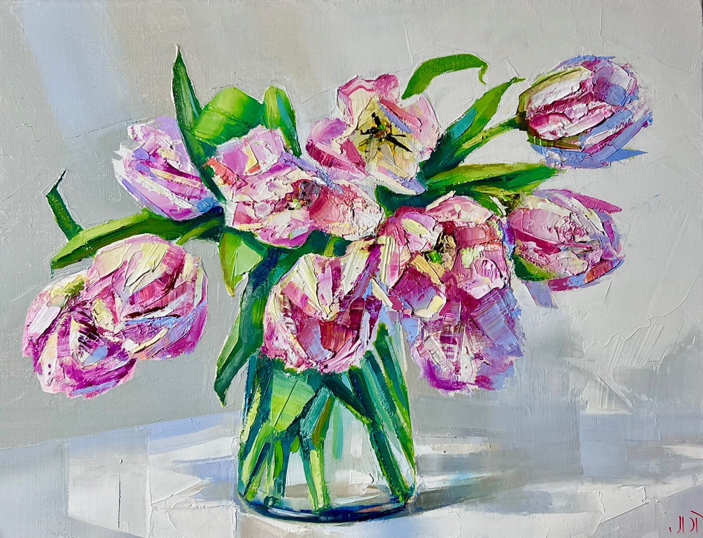 Jonathan Pocock 'Parrot Tulips' oil on linen 40x50cm