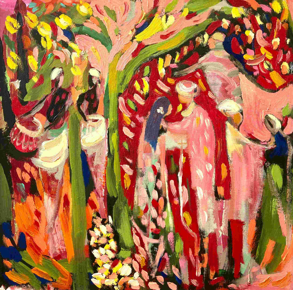 Paul Wadsworth 'Indian Wedding' oil on canvas 70x70cm