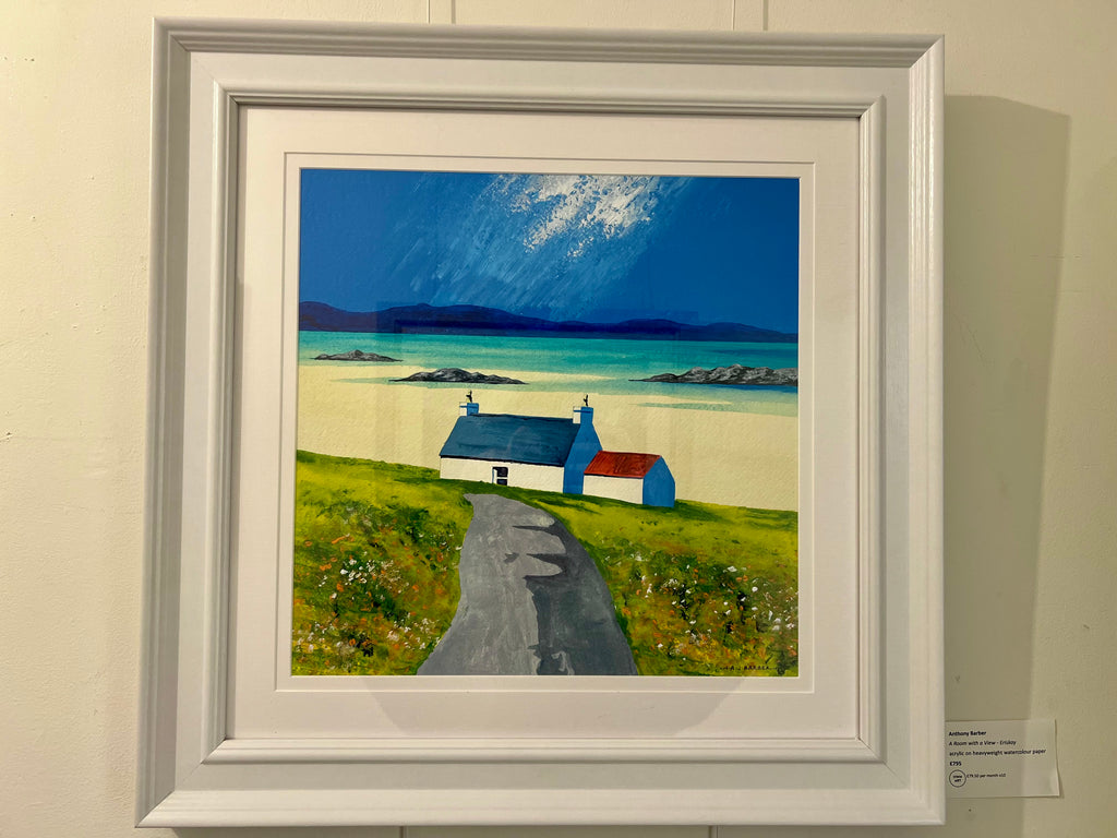 Anthony Barber 'A Room with a View - Eriskay' acrylic on heavyweight watercolour paper 36x36cm (46x46cm framed)