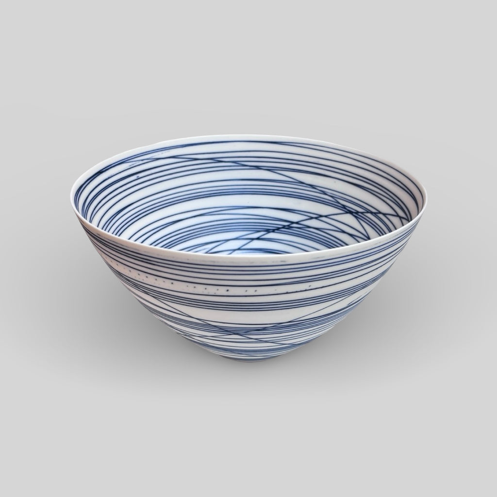 Ali Tomlin ‘Rounded Bowl (blue lines)’ AT9 porcelain H11.5xD19.5cm